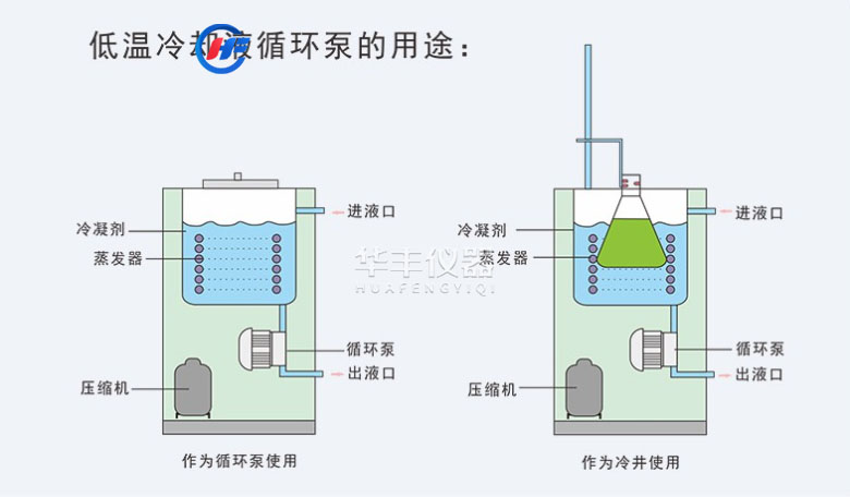 3、循環(huán)泵可將槽(機)內(nèi)冷卻液輸出,冷卻或恒溫機外實驗容器或建立另外恒溫場。